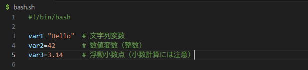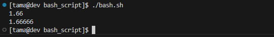 ※注意したいのが、Bash で変数に小数を格納できますが、Bash の変数は 整数型 として扱われるため、そのまま計算はできません。