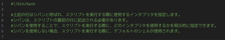 この記述により、スクリプトを実行すると /bin/bash が呼び出され、Bashとして処理されます。