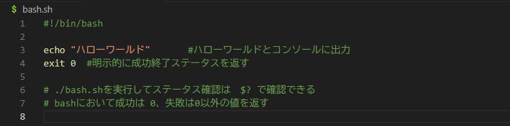 Bashスクリプトの場合、基本的には以下のように記述します。