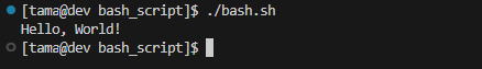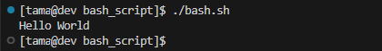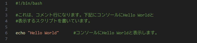 もしくは、 echo "Hello World" #コメントで、#以降がコメントとして扱われます。