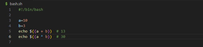 数値の計算は$(( )) を使用します。これは 算術式展開と呼び、数値演算を実行できます。