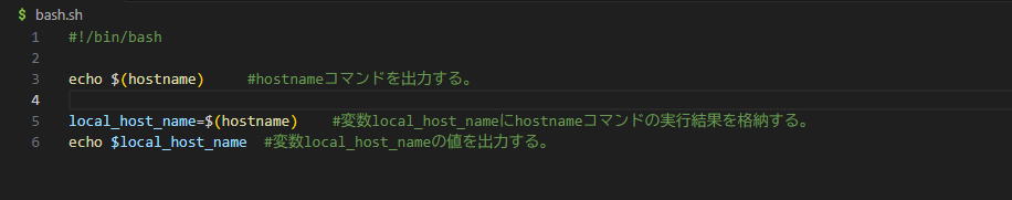 local_host_name=$(hostname) #変数local_host_nameにhostnameコマンドの実行結果を格納する。